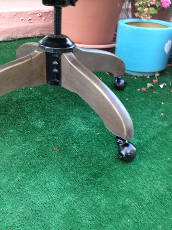 As you can see from the photos above, it took 3 coats of Citristrip to finally reveal the beautiful wood underneath. My back was crying out but the chair was singing, "I can breathe!!" I even imagined it telling me thank you and we bonded and became one. At this point I vowed to the chair that I would never cover it with paint and that I would endure backaches just to show it how much I loved and admired her.